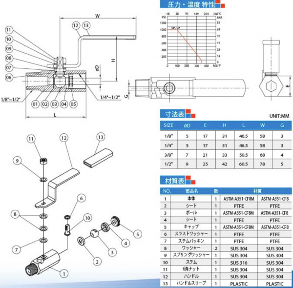 1ピースタイプ ねじ込み接続 ボールバルブ D1T