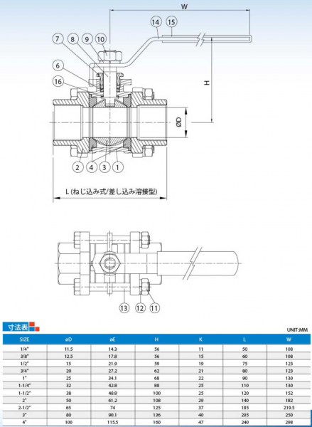 3ピースタイプ ねじ込み接続 ボールバルブ A3TM3