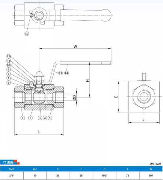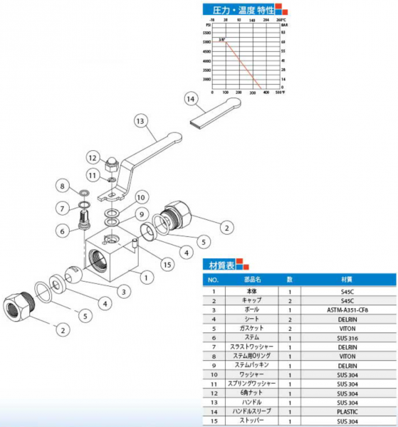 3ピースタイプ 高圧ボールバルブ A3TPN500