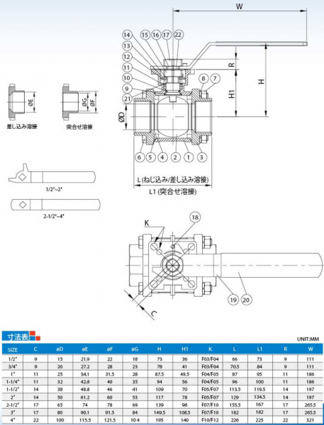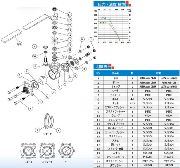 圧力規格:1000WOG(1/2"~2")、800WOG(2-1/2"~4")