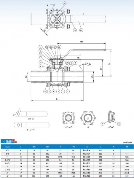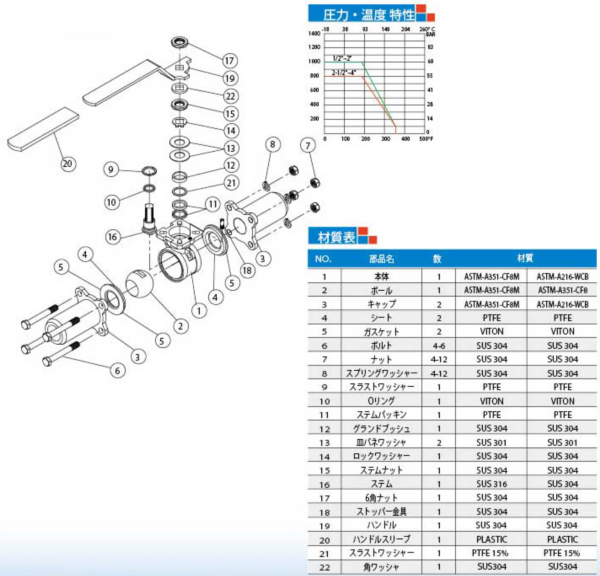 圧力規格:1000WOG(1/2"~2")、800WOG(2-1/2"~4")