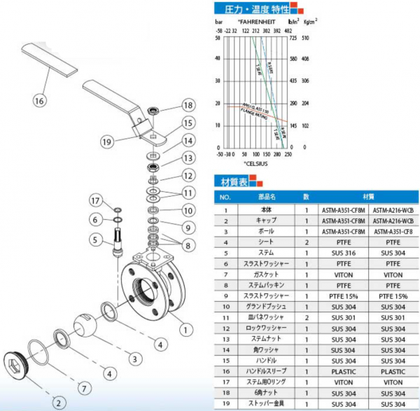材質:ASTM-A351-CF8M、ASTM-A351-CF8、ASTM-A351-CF3M、ASTM-A216-WCB