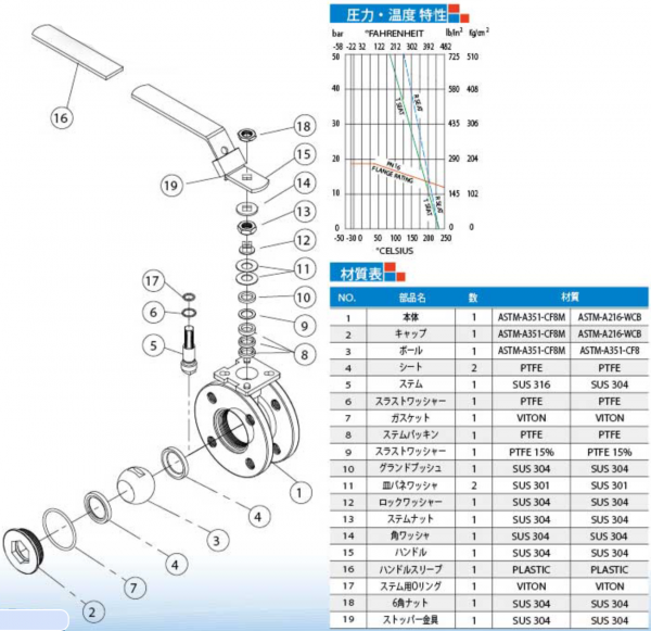 1ピースタイプ フランジ ボールバルブ H1FPN16-HL(1/2”~4”)