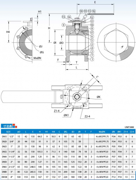呼び径: 1/2”~4”(DN15~DN100)、1/2"~ 1-1/2"(DN15~DN40)はPN40と共通タイプ