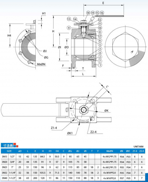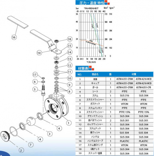 1ピースタイプ フランジ ボールバルブ H1FPN40-HL