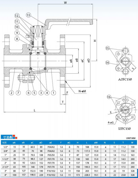 2ピースタイプ フランジ ボールバルブ A2FC150
