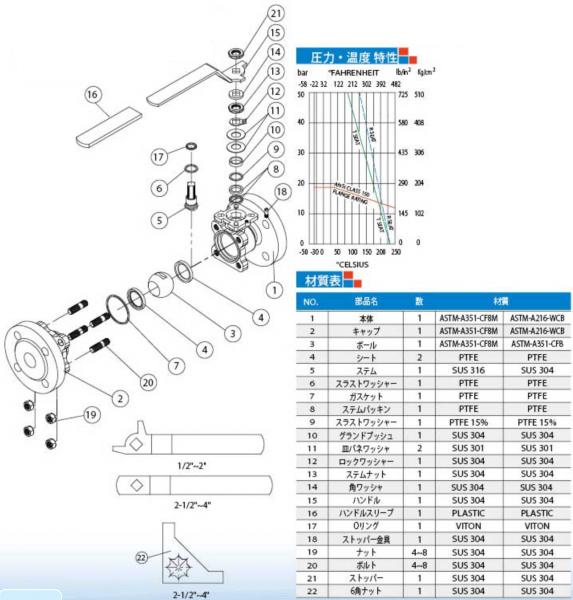 材質:ASTM-A351-CF8M、ASTM-A351-CF8、ASTM-A351-CF3M、ASTM-A216-WCB