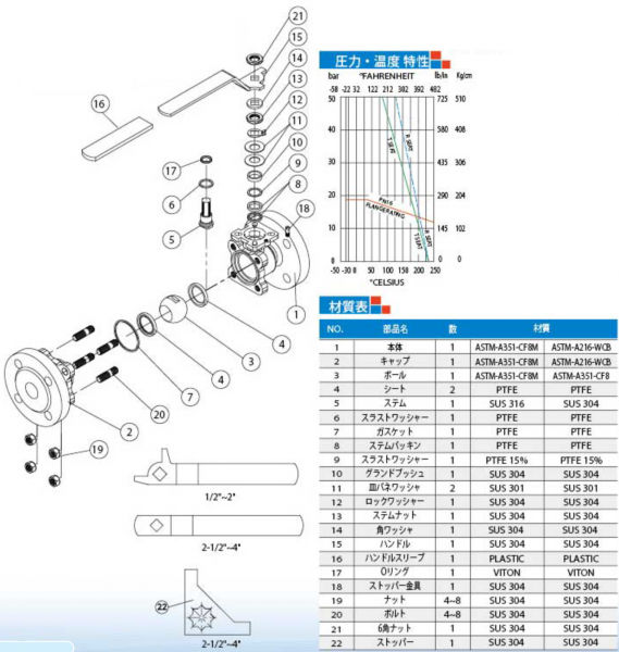 2ピースタイプ フランジ ボールバルブ H2FPN16F4