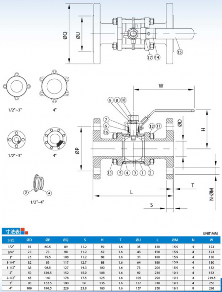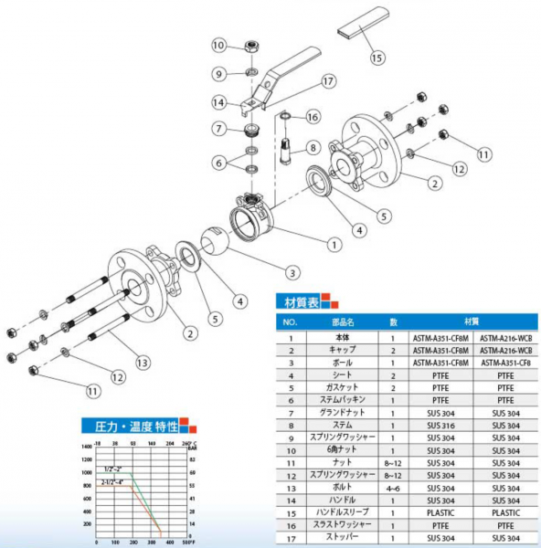 材質:ASTM-A351-CF8M、ASTM-A351-CF8、ASTM-A351-CF3M、ASTM-A216-WCB