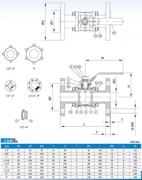 呼び径:1/2"~4"(DN15~DN100)、1/2"~1-1/2"(DN15~DN40)はPN40と共通タイプ