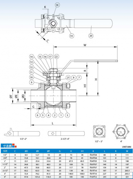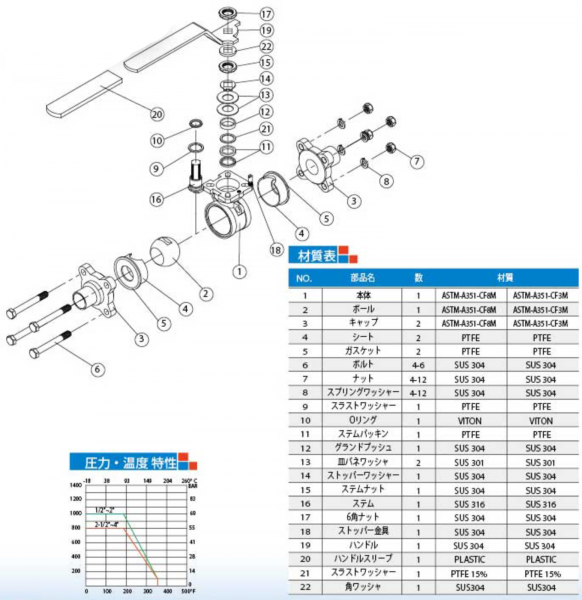 材質:ASTM-A351-CF8M、ASTM-A351-CF3M、圧力規格:1000WOG(1/2"~2")、800WOG(2-1/2"~4")