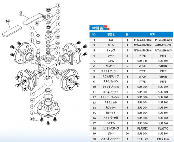 材質:ASTM-A351-CF8M、ASTM-A351-CF8、ASTM-A351-CF3M、ASTM-A216-WCB