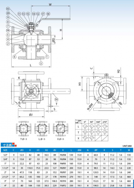 ボールオプション:Lポート/Tポート/Xポート