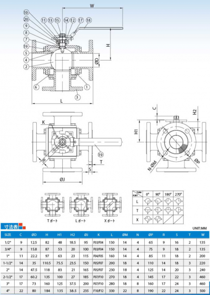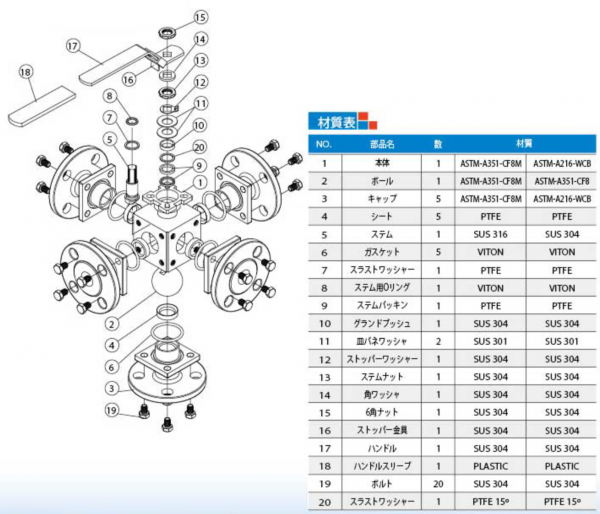 3/4/5多方 ボールバルブ H6FPN40-HL