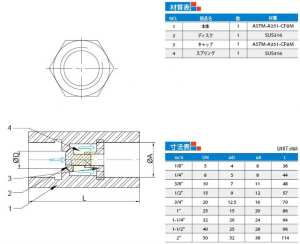 1ピースタイプ 高圧チャッキバルブ CVP-1