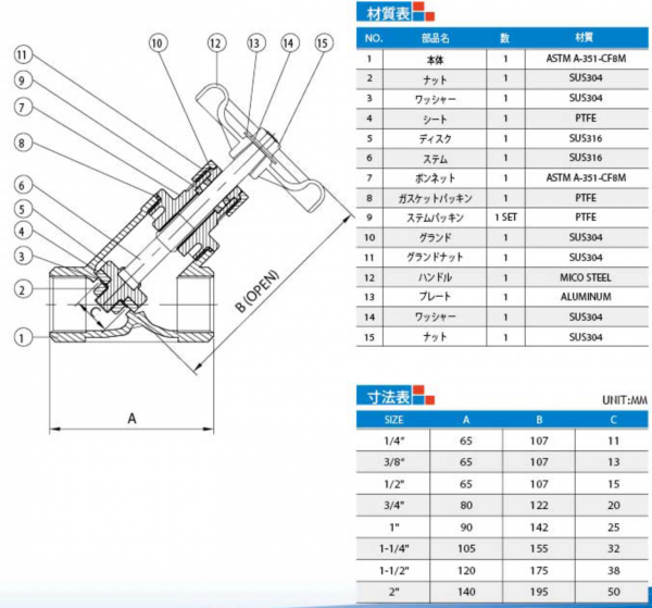 呼び径:1/4"~2"(DN8~DN50)