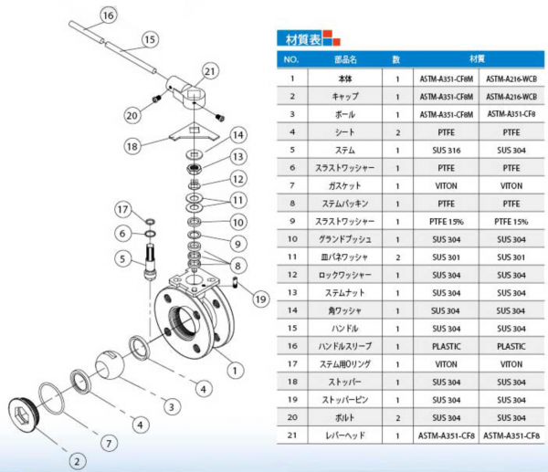 1ピースタイプ フランジ ボールバルブ H1FPN16-NL