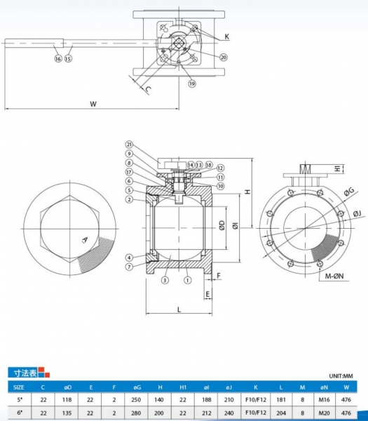 呼び径:5"~6"(DN125~DN150) ISO 5211 準拠取り付け穴 ハンドルロック:無し