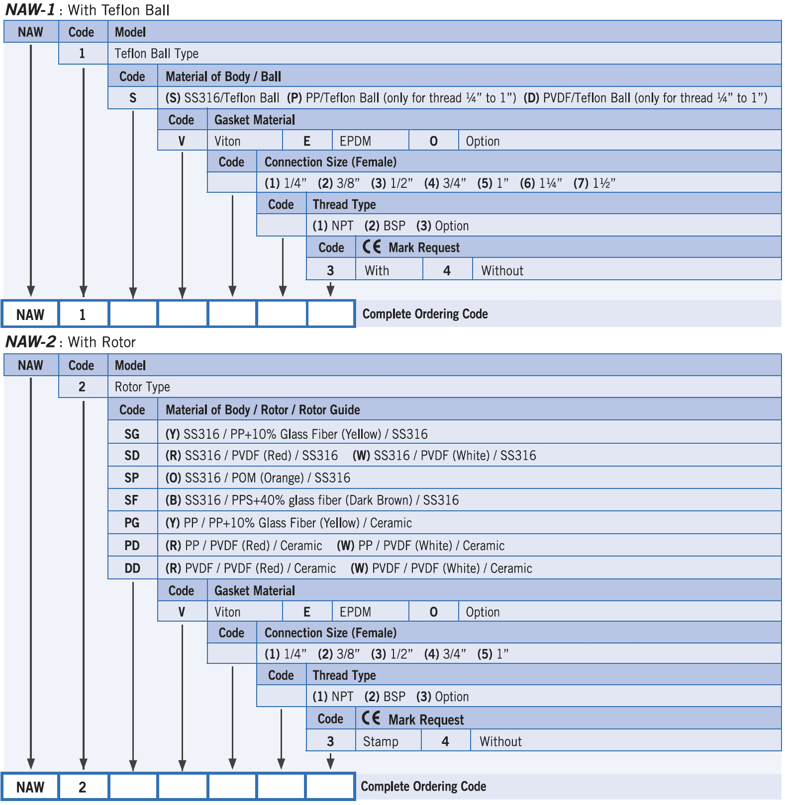 - 流れ方向:テフロンボール付き:左→右、右→左/ローター付き:任意の方向が利用可能
